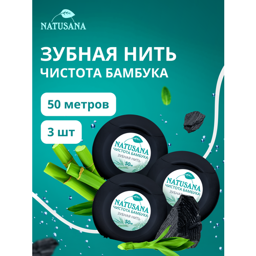 НАЙТИ ВЫГОДНЕЕ - Зубная нить Natusana, Чистота бамбука, 50 метров спайка из 3 штук