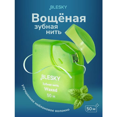 НАЙТИ ВЫГОДНЕЕ - Вощёная зубная нить BLESKY 50 м, мятная, фтор для защиты от кариеса
