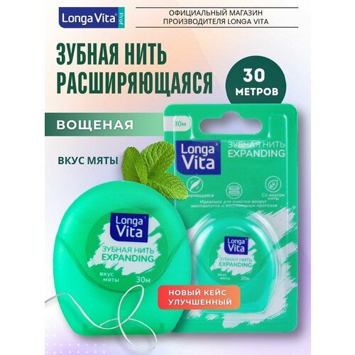 НАЙТИ ВЫГОДНЕЕ - Зубная нить Расширяющаяся Longa Vita 30 метров, вощёная, вкус мяты.