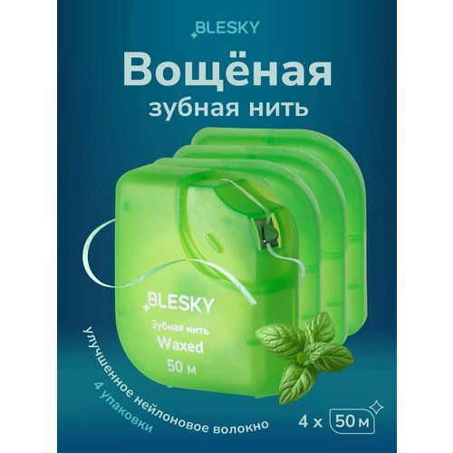 НАЙТИ ВЫГОДНЕЕ - Вощёная зубная нить BLESKY 50 м, мятная, 4 шт