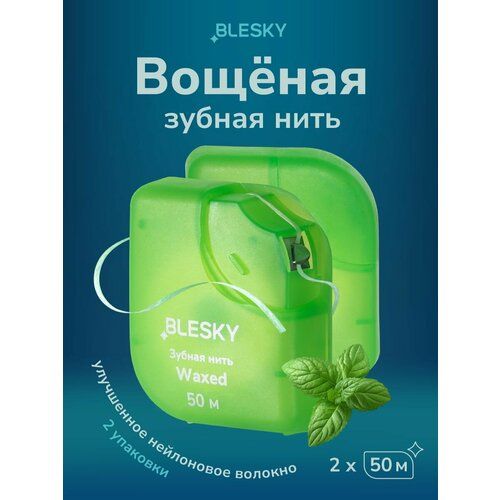 НАЙТИ ВЫГОДНЕЕ - Вощёная зубная нить BLESKY 50 м, мятная, 2 шт
