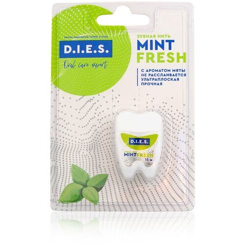 Артикул: 0670-918. Материал: См. на упаковке, Вес: 15 гр., Размер упаковки: 8 x 2 x 12 см., Длина, м: 15. Зубная нить D.I.E.S. с ароматом мяты это лёгкое, удобное и эффективное средство для гигиены полости рта. Она легко проникает в труднодоступные промежутки между зубами и удаляет остатки пищи и зубной налёт, предотвращая образование кариеса и заболеваний дёсен.Использование нити после каждого приёма пищи снижает риск возникновения неприятного запаха изо рта. Нить изготовлена из политетрафторэтилена и имеет длину 15 метров.Применение: отрезать 30–45 см нити с помощью ножа на гигиеническом боксе, намотать нить на указательные пальцы рук, расположить нить над промежутком между зубами и плавными движениями перемещать нить вдоль поверхности зубов вниз до края десны и обратно. Повторить операцию 2–3 раза до полного удаления остатков пищи.Зубная нить D.I.E.S. не требует особых условий хранения и подходит для любого типа зубов и дёсен.