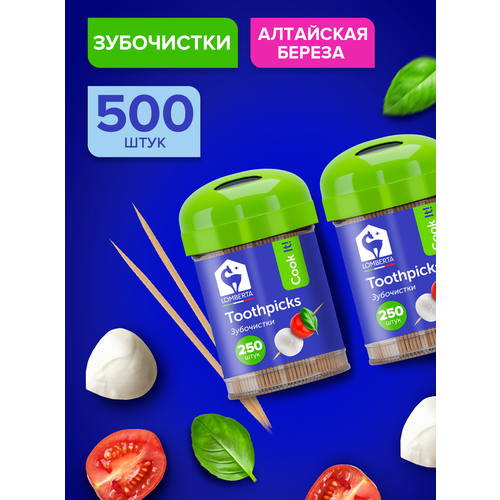 НАЙТИ ВЫГОДНЕЕ - Зубочистки Lomberta, деревянные, двусторонние, прочные, упаковка 500 шт