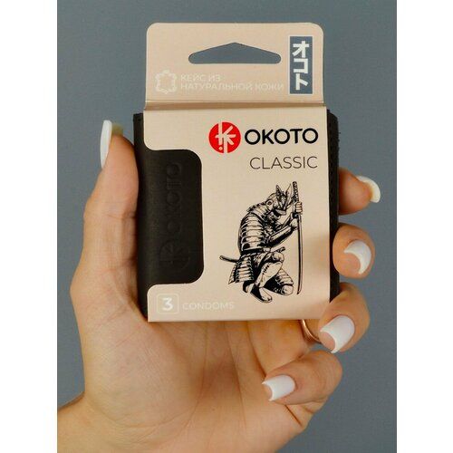 НАЙТИ ВЫГОДНЕЕ - Чехол из натуральной кожи с тремя презервативами OKOTO