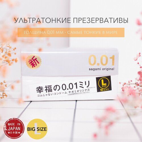 НАЙТИ ВЫГОДНЕЕ - Презервативы японские полиуретановые 0.01 мм, Sagami Original 0.01 L-size - 10 шт.