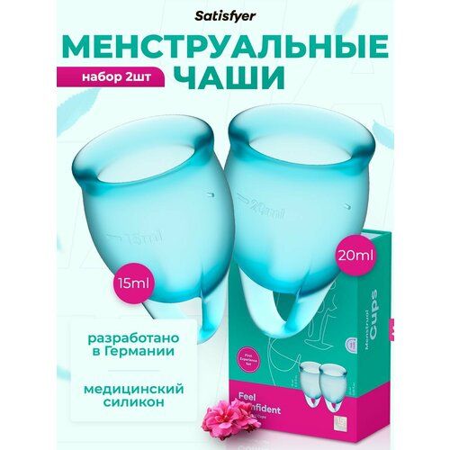 НАЙТИ ВЫГОДНЕЕ - Менструальные чаши Satisfyer Feel Confident, 2 штуки, цвет голубой, мешочек для хранения в комплекте, менструальная чаша