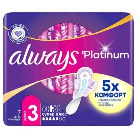 НАЙТИ ВЫГОДНЕЕ - Женские гигиенические прокладки с крылышками Always Platinum Супер Плюс, размер 3, 7шт.