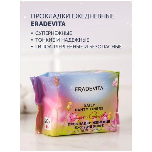 Ежедневные прокладки входят в линейку супернежныхгипоаллергенных средств гигиены EraDeVita. De – с китайского языка «совершенство», Vita – с латинского «жизнь». Коллекция средств EraDeVita – это старт «Эры Совершенной Жизни», которая начинается с бережной заботы о себе, о своем здоровье и отличном самочувствии.
