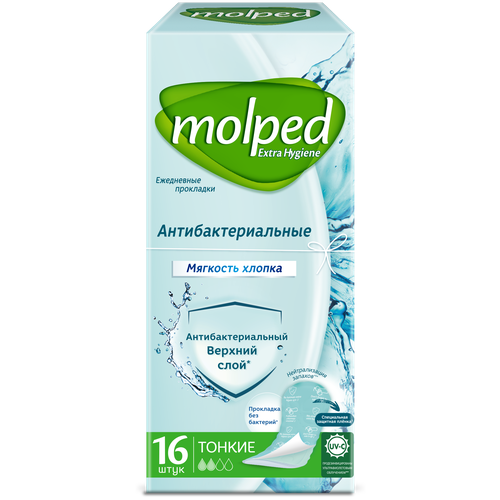 Прокладки женские MOLPED антибактериальные, ежедневные, 16 шт