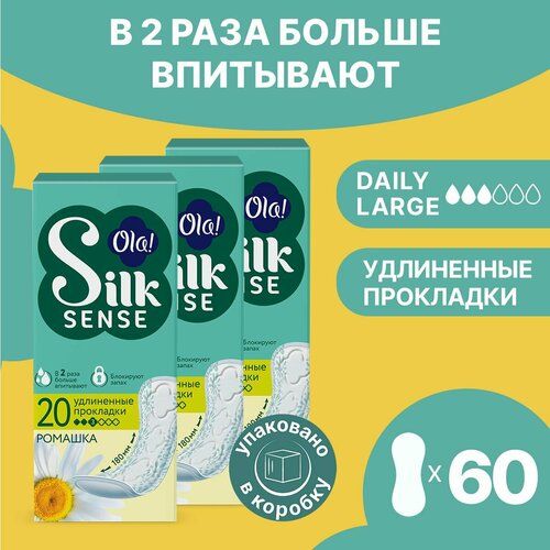 НАЙТИ ВЫГОДНЕЕ - Прокладки женские ежедневные удлиненные Ola Silk Sense, аромат Ромашка, 60 шт. (3 уп. х 20)