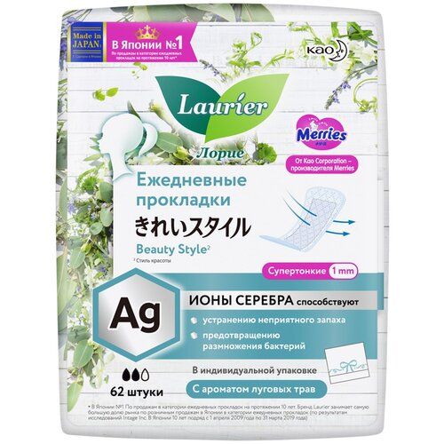 НАЙТИ ВЫГОДНЕЕ - Ежедневные прокладки Laurier Beauty Style Fresh с ионами серебра с ароматом луговых трав 62 шт