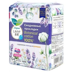 Мягкие и супертонкие ежедневные японские прокладки Laurier F Botanical Cotton с ароматом лаванды и ромашки (Лорие Эф ботаникал коттон, Лауриер), 3 капли — идеальное средство личной гигиены для женщин на каждый день. Обеспечивают ощущения чистоты, свежести и нежной заботы в течение всего дня. Супертонкие (толщина впитывающего слоя ~ 1 мм) ежедневки легко принимают форму нижнего белья, не скручиваются, не сминаются и не отклеиваются. С ними удобно заниматься спортом и вести активный образ жизни. Нежнейшая поверхность, состоящая из 100% хлопка, практически не ощутима на коже, не липнет и не вызывает раздражений. Воздухопроницаемый нижний слой прокладки не пропускает выделения, но превосходно выводит прелый воздух, обеспечивая максимальный комфорт и ощущение свежести. А безопасная и нежная отдушка с ароматом лаванды и ромашки создаёт отличное настроение и уверенность в защите от неприятных запахов на весь день. Каждая ежедневная ароматизированная прокладка Лорие выпускается в индивидуальной упаковке, которая занимает мало места в сумочке и позволяет сохранить гигиеничность и чистоту прокладки до момента использования. Её удобно захватить с собой на работу или оставить в тумбочке офиса. Женские гигиенические прокладки на каждый день Laurier F Botanical Cotton от производителя японских подгузников Merries (KAO Corporation) и подходят для самой чувствительной и нежной кожи, в том числе в качестве ежедневных прокладок для девочек подростков. Одна флоу-упаковка Laurier F Botanical Cotton содержит 54 прокладки и заменит Вам примерно 3 стандартные упаковки более дешёвых прокладок на каждый день. Длина каждой прокладки – 14 см. Со средствами личной гигиены для женщин Laurier (Лорие) Вы будете чувствовать себя свободной, защищённой и уверенной в любой день. Позаботьтесь о важном, а о Вас позаботится Laurier.