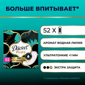НАЙТИ ВЫГОДНЕЕ - Женские ежедневные прокладки Discreet ZonePlus Водная Лилия, 52 шт.