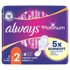 НАЙТИ ВЫГОДНЕЕ - Женские гигиенические прокладки с крылышками Always Platinum Нормал Плюс, размер 2, 8шт.