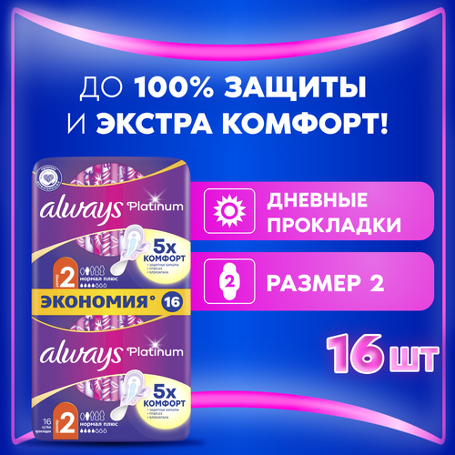 НАЙТИ ВЫГОДНЕЕ - Женские гигиенические прокладки с крылышками Always Platinum Нормал Плюс, размер 2, 16шт.