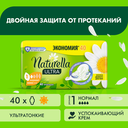 Гигиенические прокладки с крылышками Naturella Ultra «Нормал» теперь оснащены усиленной системой впитывающих волокон и при этом все также обеспечивают нежную защиту кожи в интимной зоне. Это единственные женские прокладки, содержащие сухой лосьон Dermacrem против раздражения кожи. Гигиенические прокладки Naturella Ultra с усиленной системой впитывающих волокон. Не раздражают кожу. Ультратонкие для комфорта и свободы движений. Одобрены Российским обществом акушеров-гинекологов. Гигиенические прокладки с ароматом ромашки для защиты от неприятного запаха. Индивидуальная упаковка удобна для защиты и ухода вне дома. прокладки Naturella Ultra имеют небольшую толщину и усиленный внутренний слой, который помогает впитывать и удерживать жидкость внутри, обеспечивая сухость и комфорт.