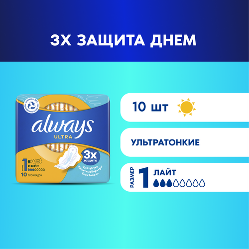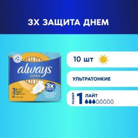 НАЙТИ ВЫГОДНЕЕ - Женские гигиенические прокладки с крылышками Always Ultra Лайт, размер 1, 10 шт.