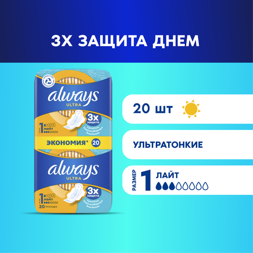 НАЙТИ ВЫГОДНЕЕ - Женские гигиенические прокладки с крылышками Always Ultra Лайт, размер 1, 20 шт.