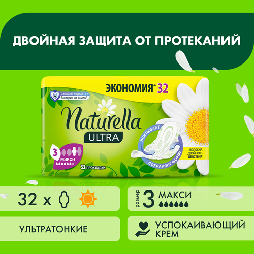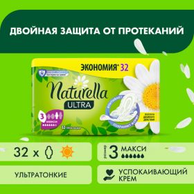 НАЙТИ ВЫГОДНЕЕ - Женские гигиенические ароматизированные прокладки Naturella Ultra Maxi с ароматом ромашки Quatro, 32 шт.