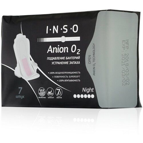 НАЙТИ ВЫГОДНЕЕ - Inso прокладки Anion O2 Night, 6 капель, 7 шт., белый, без аромата