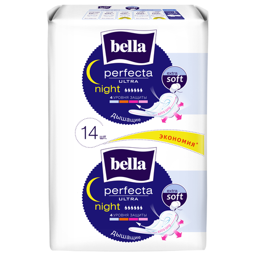 НАЙТИ ВЫГОДНЕЕ - Bella прокладки Perfecta ultra night extra soft, 6 капель, 14 шт., белый, без аромата