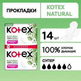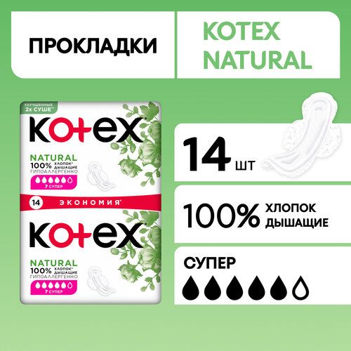 НАЙТИ ВЫГОДНЕЕ - Прокладки женские гигиенические Kotex Natural Super, 14 шт