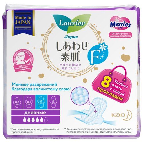 НАЙТИ ВЫГОДНЕЕ - Женские дневные супертонкие гигиенические прокладки Laurier F с крылышками, 5 капель, размер L, 8 шт