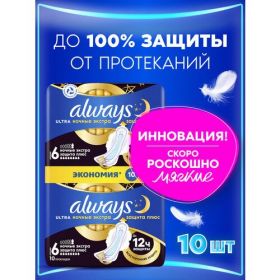 НАЙТИ ВЫГОДНЕЕ - Женские гигиенические прокладки с крылышками Always Ultra Secure Night Extra, 10 шт.