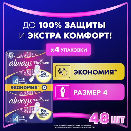 НАЙТИ ВЫГОДНЕЕ - Женские гигиенические Прокладки с крылышками Always Platinum Ночные, размер 4, 48шт.