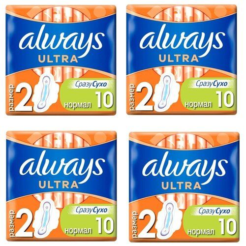 НАЙТИ ВЫГОДНЕЕ - Always Гигиенические прокладки Ultra Normal , 4 упаковки , размер 2, 10 шт .