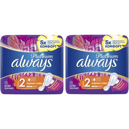 НАЙТИ ВЫГОДНЕЕ - Always прокладки Platinum Ultra Normal Plus, 4 капли, 8 шт., 2 уп., белый