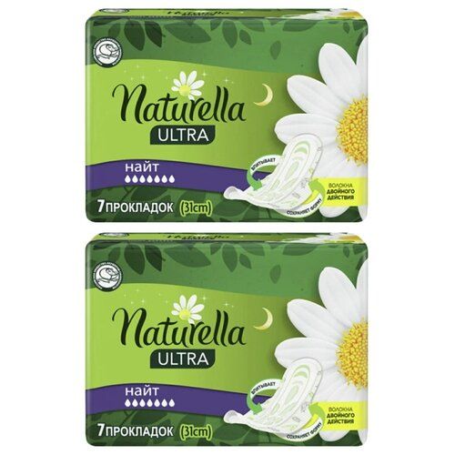 НАЙТИ ВЫГОДНЕЕ - Naturella прокладки Camomile Ultra Night, 7 капель, 7 шт., 2 уп., ромашка