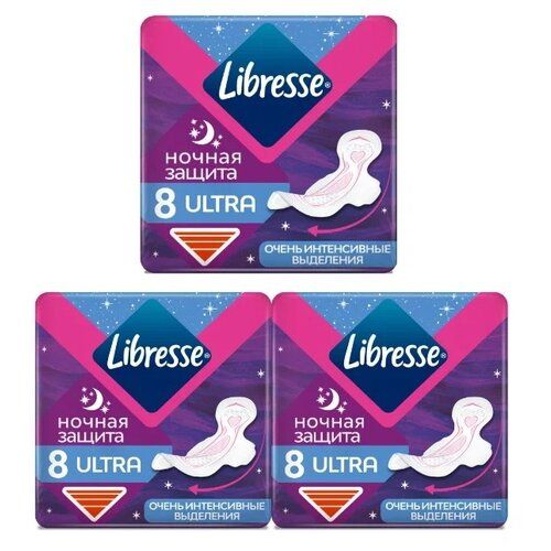 НАЙТИ ВЫГОДНЕЕ - Либресс прокладки Ultra ночные с мягкой поверхностью, 6 капель, 8 шт., 3 уп., белый, без аромата