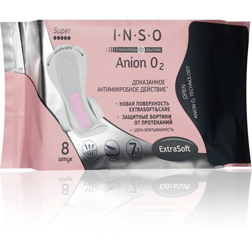 НАЙТИ ВЫГОДНЕЕ - Женские прокладки INSO Anion O2 Super с анионовым слоем 8шт