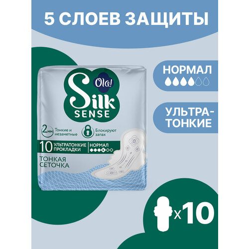 НАЙТИ ВЫГОДНЕЕ - Прокладки женские тонкие с крылышками Ola Silk Sense Нормал, поверхность сеточка, без аромата, 10 шт.