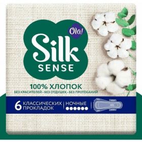 НАЙТИ ВЫГОДНЕЕ - Ola прокладки Silk Sense Cotton ULTRA NIGHT, 6 капель, 6 шт., белый, без аромата