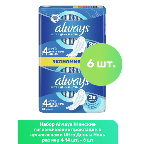 НАЙТИ ВЫГОДНЕЕ - Always Женские гигиенические прокладки с крылышками Ultra День и Ночь размер 4 14 шт. - 6 шт