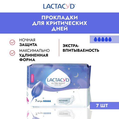 НАЙТИ ВЫГОДНЕЕ - Lactacyd прокладки Ultra Night, 5 капель, 7 шт., белый, без аромата
