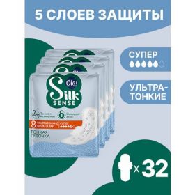 НАЙТИ ВЫГОДНЕЕ - Прокладки женские с крылышками Ola Silk Sense Ultra Супер, поверхность сеточка, без аромата, 32 шт. (4 уп. х 8)