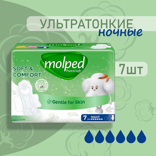 НАЙТИ ВЫГОДНЕЕ - Прокладки Molped ультратонкие pure&soft с крылышками ночные 7 шт