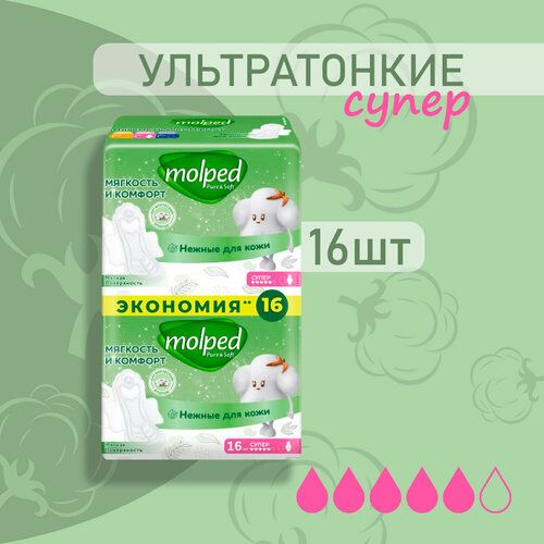 Molped ультратонкие прокладки pure soft duo с крылышками супер 16шт