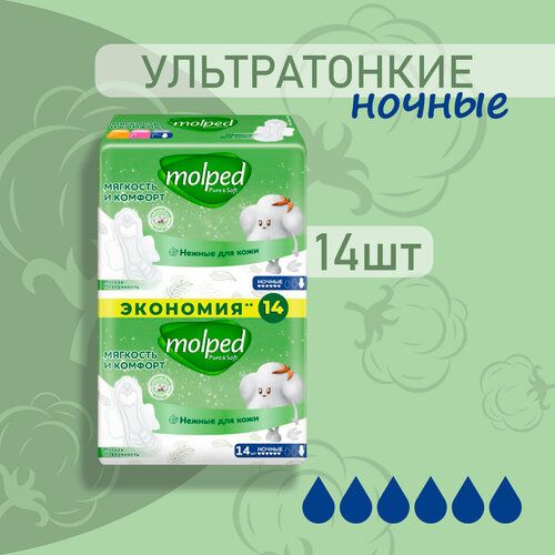 Molped ультратонкие прокладки pure soft duo с крылышками ночные 14шт