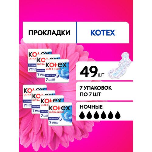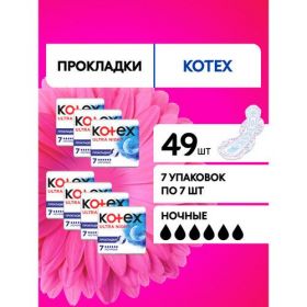 НАЙТИ ВЫГОДНЕЕ - Прокладки женские ночные Kotex Ultra гигиенические, 49 шт (7уп по 7шт)
