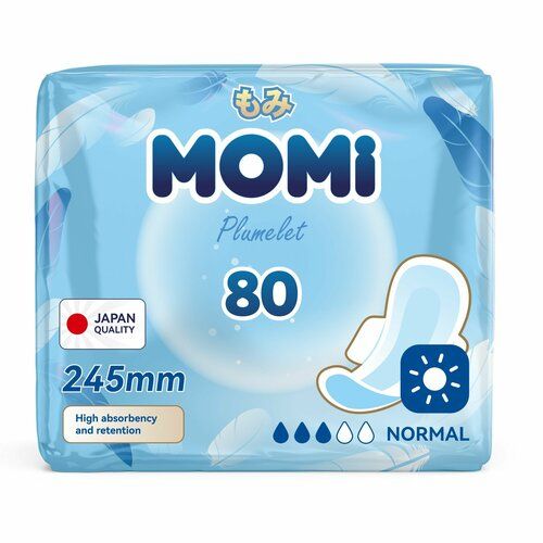 НАЙТИ ВЫГОДНЕЕ - Гигиенические прокладки Momi Женские Normal с крылышками 24,5 см 80 шт