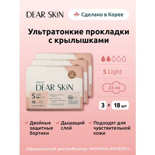 НАЙТИ ВЫГОДНЕЕ - Dear Skin Гигиенические ультратонкие прокладки с крылышками для легких выделений (2 капли), 3х18 штук