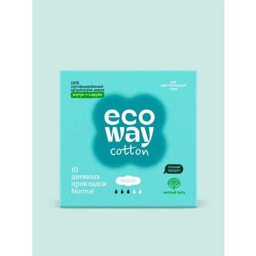 НАЙТИ ВЫГОДНЕЕ - Дневные прокладки из органического хлопка с крылышками ECOWAY cotton (3 капли), 10 шт.