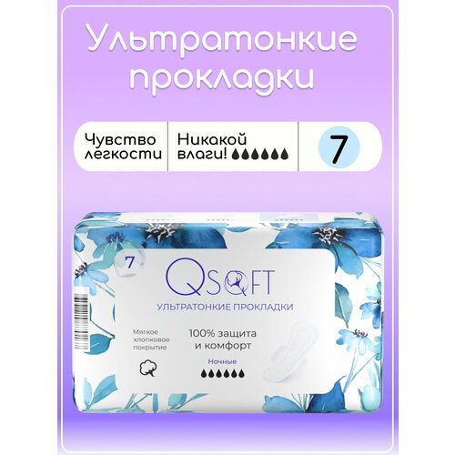 НАЙТИ ВЫГОДНЕЕ - Прокладки женские ночные Qsoft Ultra Night ультратонкие гигиенические 7 штук