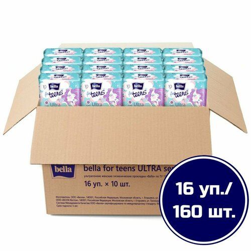 НАЙТИ ВЫГОДНЕЕ - Прокладки женские ультратонкие bella for teens ultra Sensitive с крылышками для критических дней, 10 шт. х 16 уп./ 160 шт.