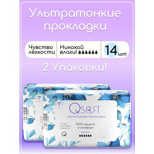 НАЙТИ ВЫГОДНЕЕ - Прокладки женские ночные Qsoft Ultra Night ультратонкие гигиенические 14 штук