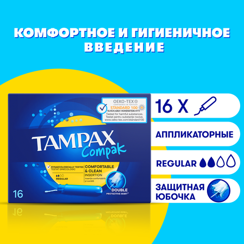 НАЙТИ ВЫГОДНЕЕ - Женские Гигиенические тампоны с аппликатором TAMPAX Compak Regular, 16 шт.